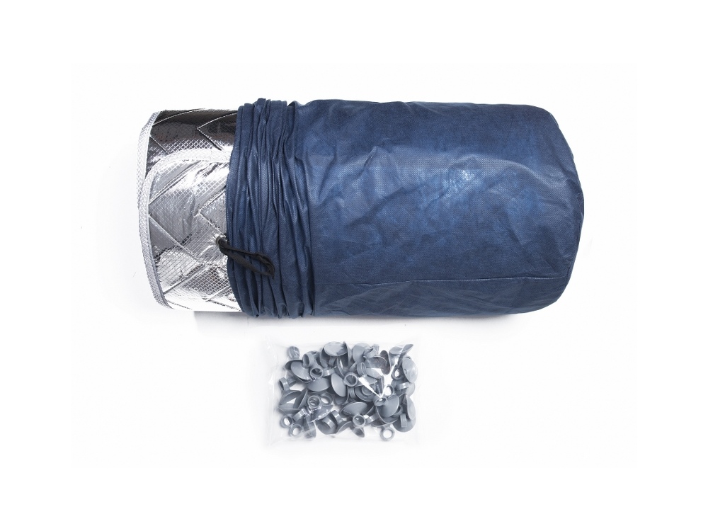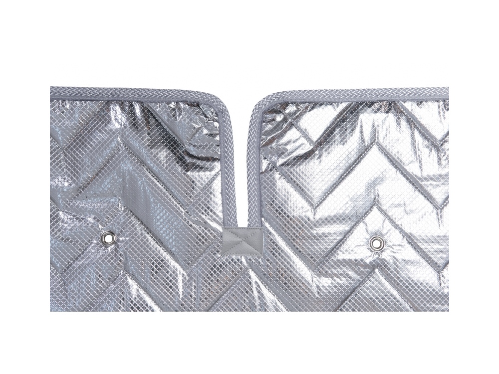 1 rideau isolant pour le pare-brise (couture de finition + œillets pour ventouses).