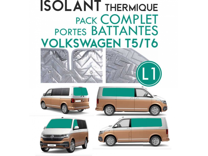 ISOLANT OCCULTANT & THERMIQUE ALUMINIUM – VOLKSWAGEN TRANSPORTER T5 / T6 – 9 PIÈCES – L1H1 – PORTES BATTANTES
