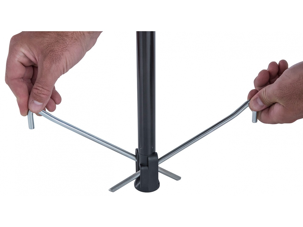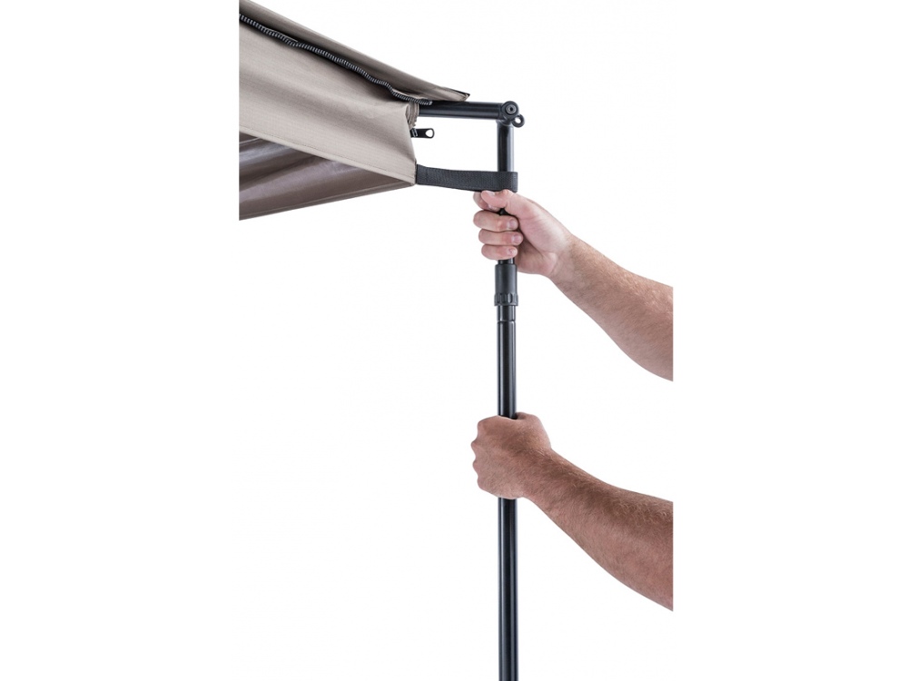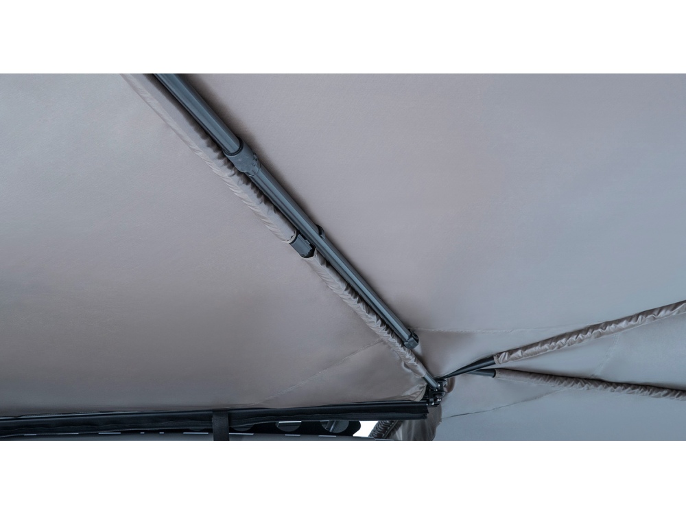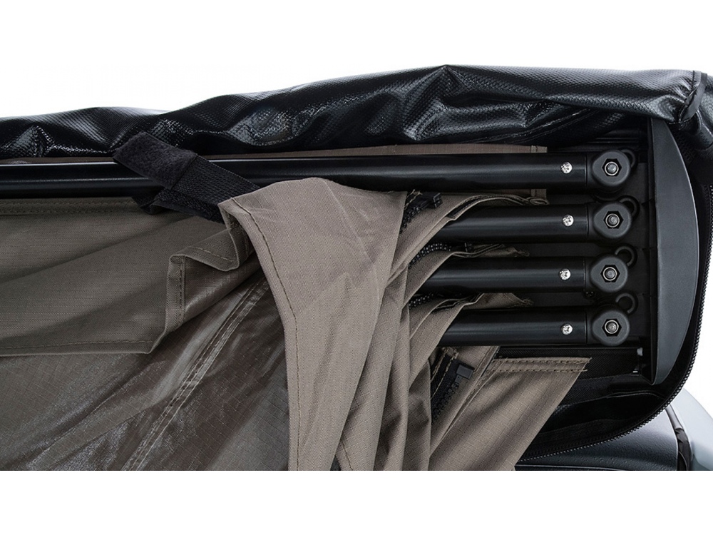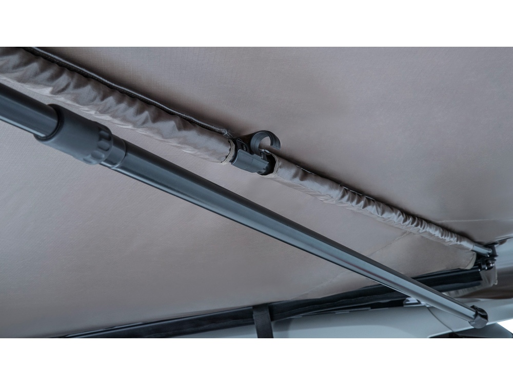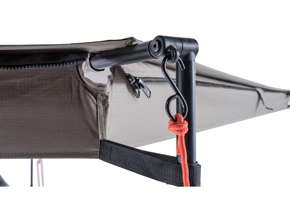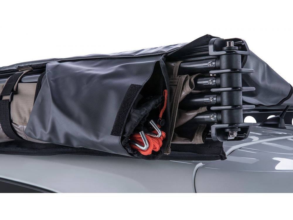 L'auvent est équipé du système STOW iT, qui permet un montage et un retrait rapide pour un rangement facilité lorsque vous ne l'utilisez pas. Il est également compatible avec le système breveté Zwifloc, offrant un positionnement flexible sans avoir à déplacer d'autres accessoires fixés sur votre galerie de toit.