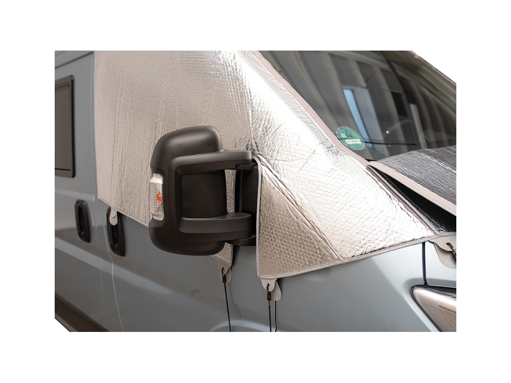 Rideau occultant thermique spécialement conçu pour isoler le pare brise et les vitres laterales avant de votre FORD TRANSIT A PARTIR DE 2014.
