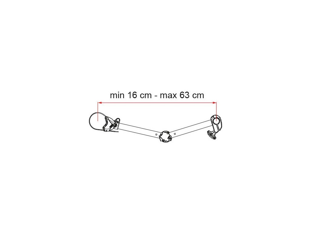 Accessoire camping-car extrêmement pratique pour fixer son vélo en toute simplicité, la barre de maintien PRO S D3 se compose de deux bras articulés et réglables. Ainsi, vous pouvez parfaitement ajuster l'écart entre les vélos sur le porte vélo.