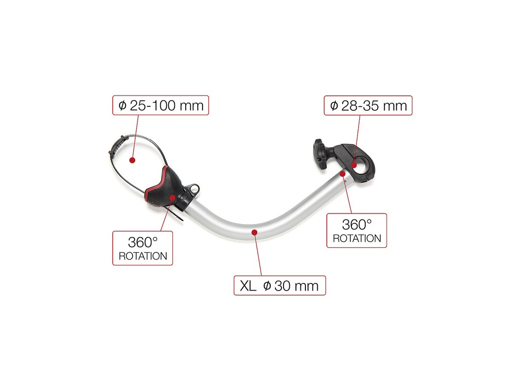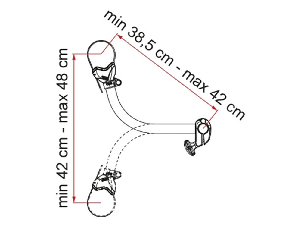 Le Bike-Block Pro S 3 convient donc pour le troisième vélo du porte vélo il offre une longueur d'entraxe de 38,5 à 42 cm.