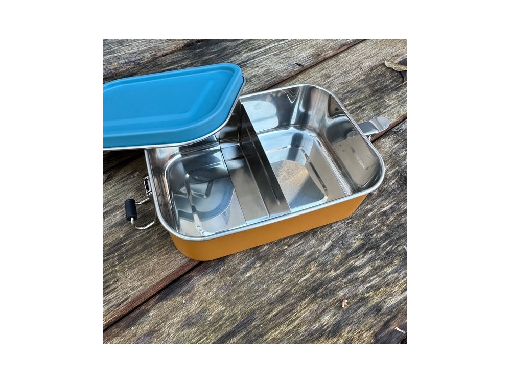 - La boîte en acier inoxydable n’absorbe pas non plus les odeurs, et le séparateur garde les différents encas-encas séparés.