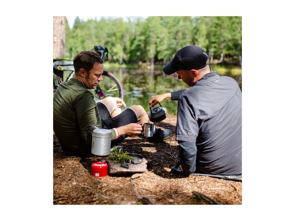 Pour servir le café et le thé avec style, cette bouilloire est un must pour tous les passionnés de plein air qui aiment le détail. La bouilloire légère est fabriquée en aluminium anodisé et est équipée d'une poignée pliante intégrée.