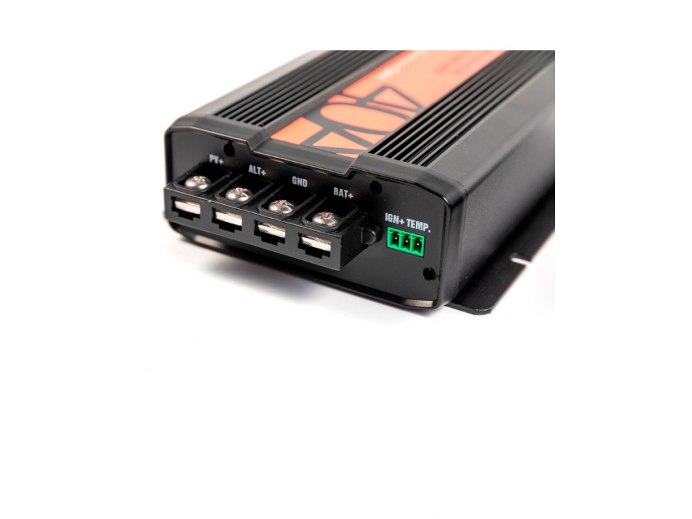 Les chargeurs booster régulateur solaire BOOST 40 MPPT ENERGIE MOBILE sont dotés de deux entrées, permettant ainsi de recharger vos batteries par l’alternateur ou via des panneaux solaires grâce au régulateur MPPT intégré.