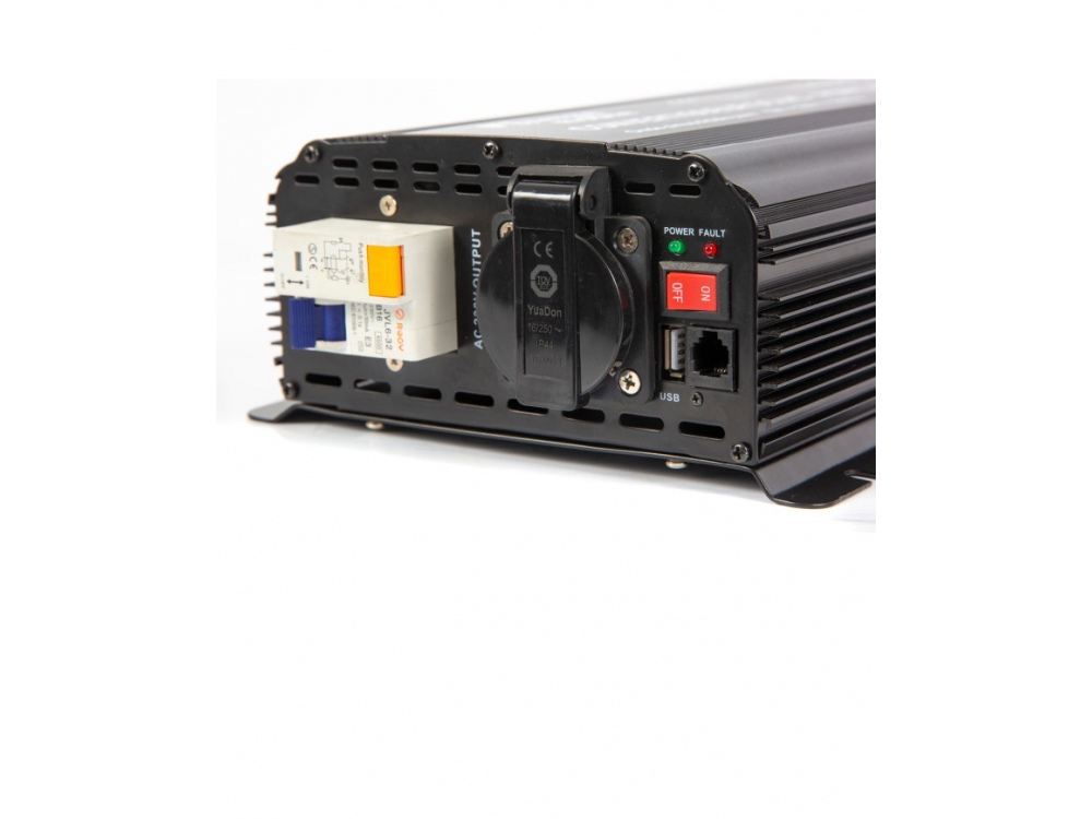 Le convertisseur PSW12-1600DIF-V2 est équipé d'un disjoncteur différentiel garantissant la sécurité des personnes et la conformité des installations. Télécommande intégrée. Le modèle est livré pré-câblés.