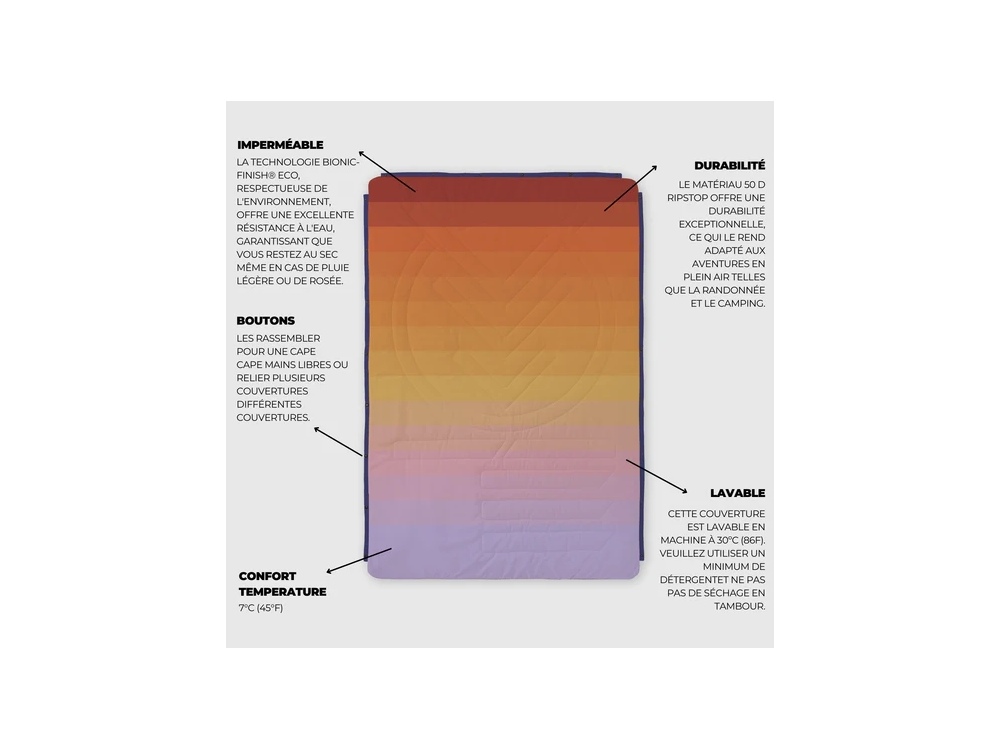 C'est bien plus qu'une couverture, c'est à la fois une couverture, un sac de couchage, une cape et un oreiller ! Elle est chaude avec un confort amélioré, un toucher noble et une chaleur semblable au duvet tout en permettant un lavage en machine.