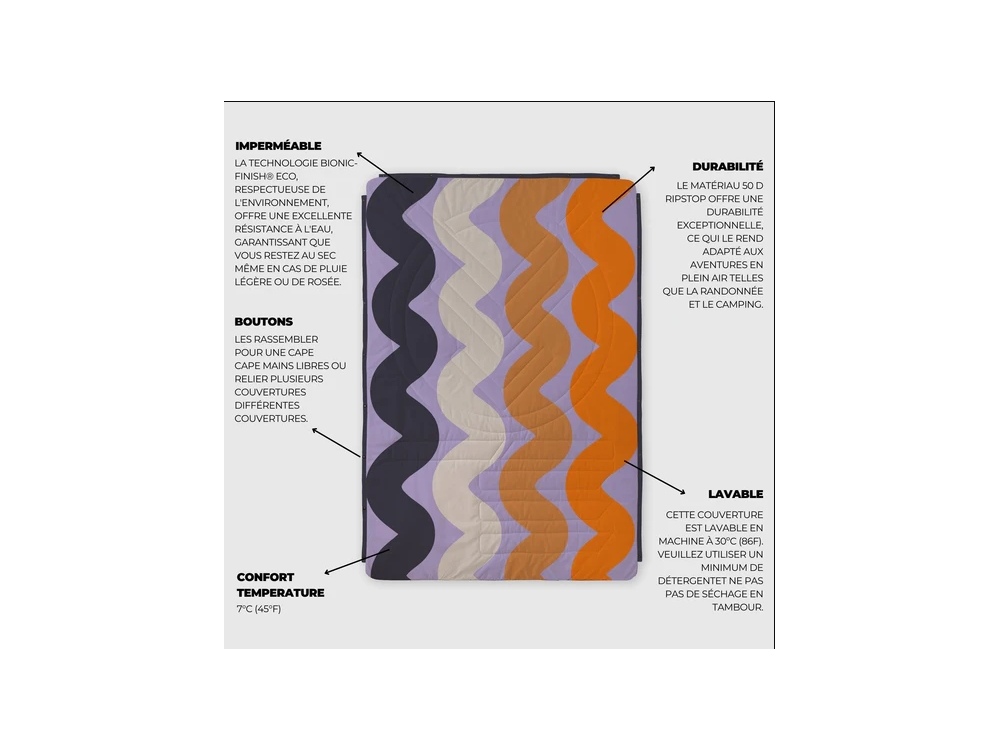 C'est bien plus qu'une couverture, c'est à la fois une couverture, un sac de couchage, une cape et un oreiller ! Elle est chaude avec un confort amélioré, un toucher noble et une chaleur semblable au duvet tout en permettant un lavage en machine.
