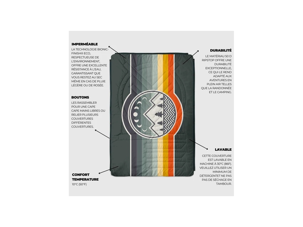 C'est bien plus qu'une couverture, c'est à la fois une couverture, un sac de couchage, une cape et un oreiller ! Elle est chaude avec un confort amélioré, un toucher noble et une chaleur semblable au duvet tout en permettant un lavage en machine.