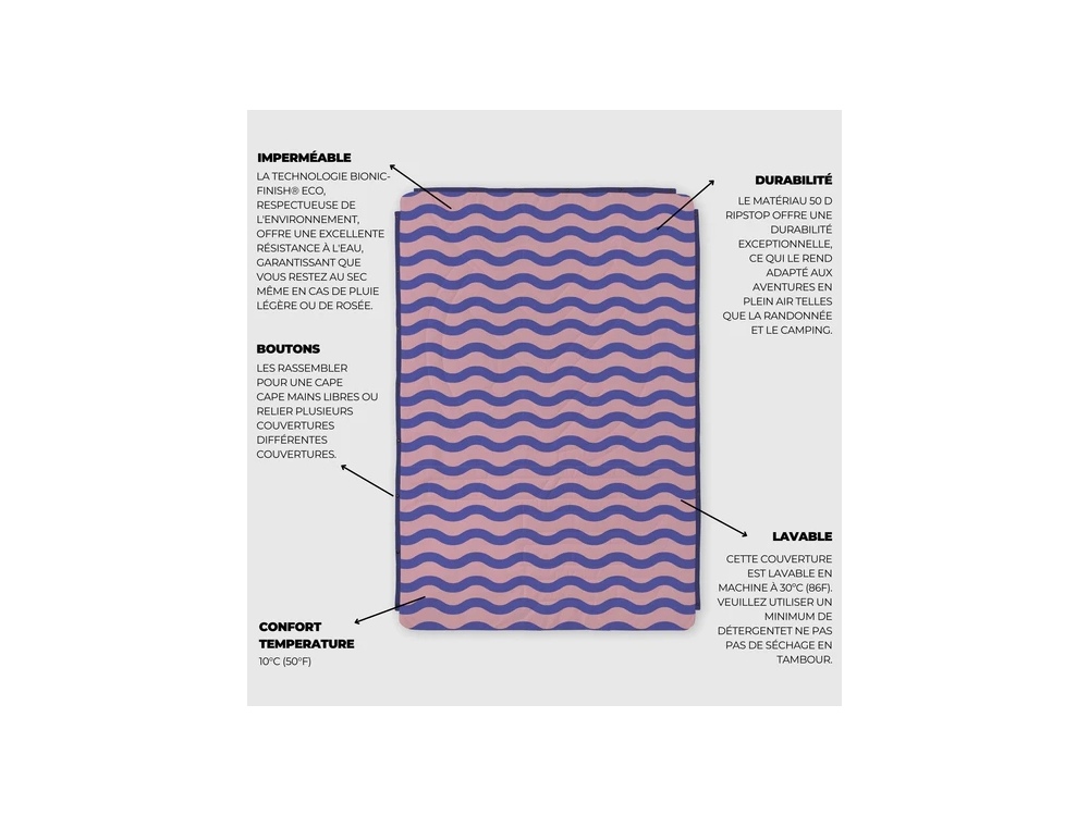 C'est bien plus qu'une couverture, c'est à la fois une couverture, un sac de couchage, une cape et un oreiller ! Elle est chaude avec un confort amélioré, un toucher noble et une chaleur semblable au duvet tout en permettant un lavage en machine.