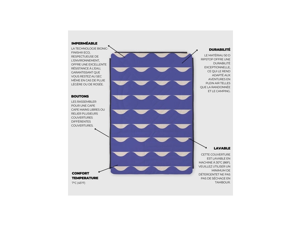 C'est bien plus qu'une couverture, c'est à la fois une couverture, un sac de couchage, une cape et un oreiller ! Elle est chaude avec un confort amélioré, un toucher noble et une chaleur semblable au duvet tout en permettant un lavage en machine.