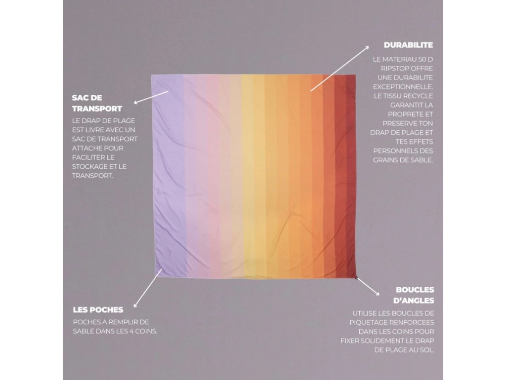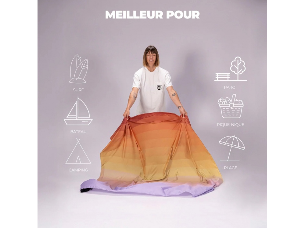 • Fabriqué en polyester ripstop recyclé et durable, le drap de plage Sandfree est conçu pour être performant et respectueux de la planète.