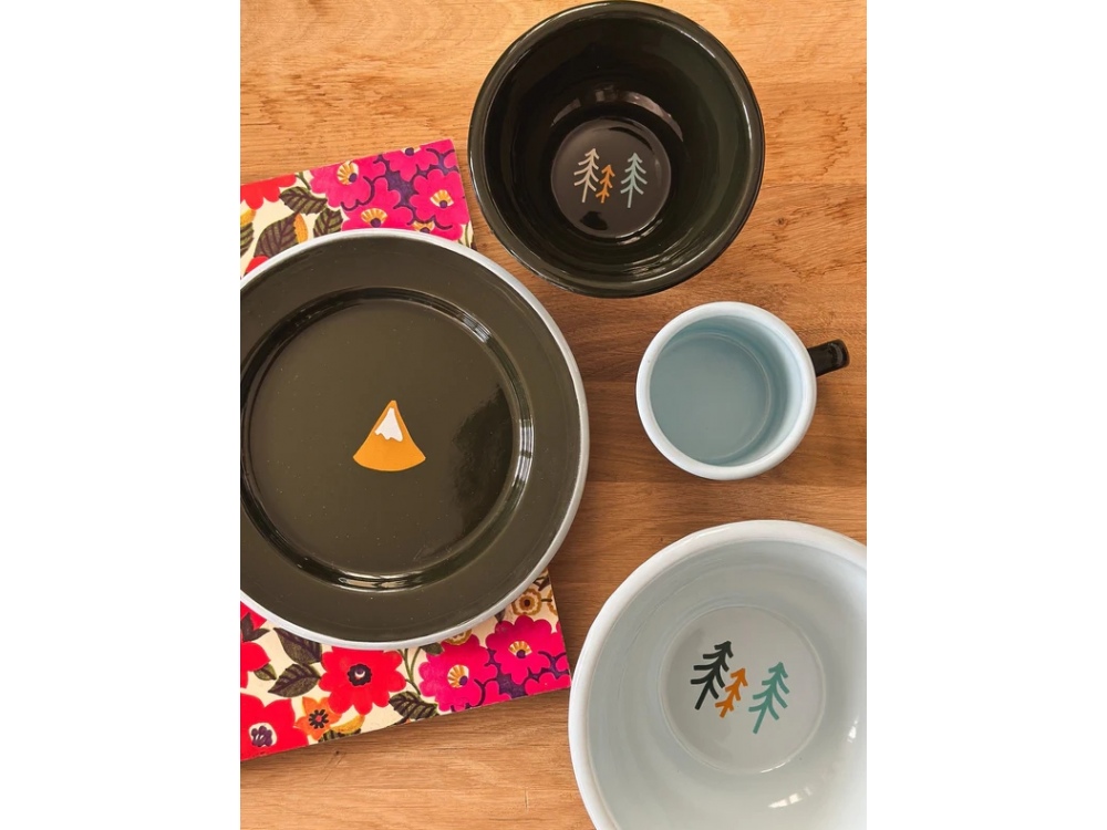 - Complétez votre set avec des bols et tasses en émail, grands et petits.