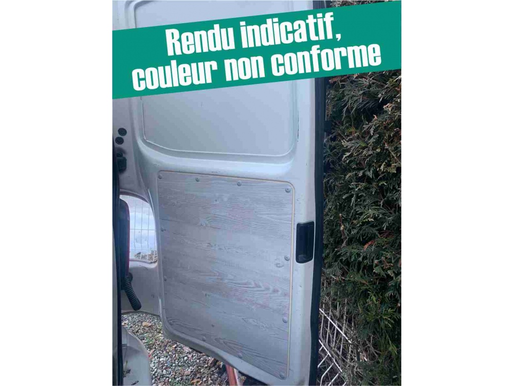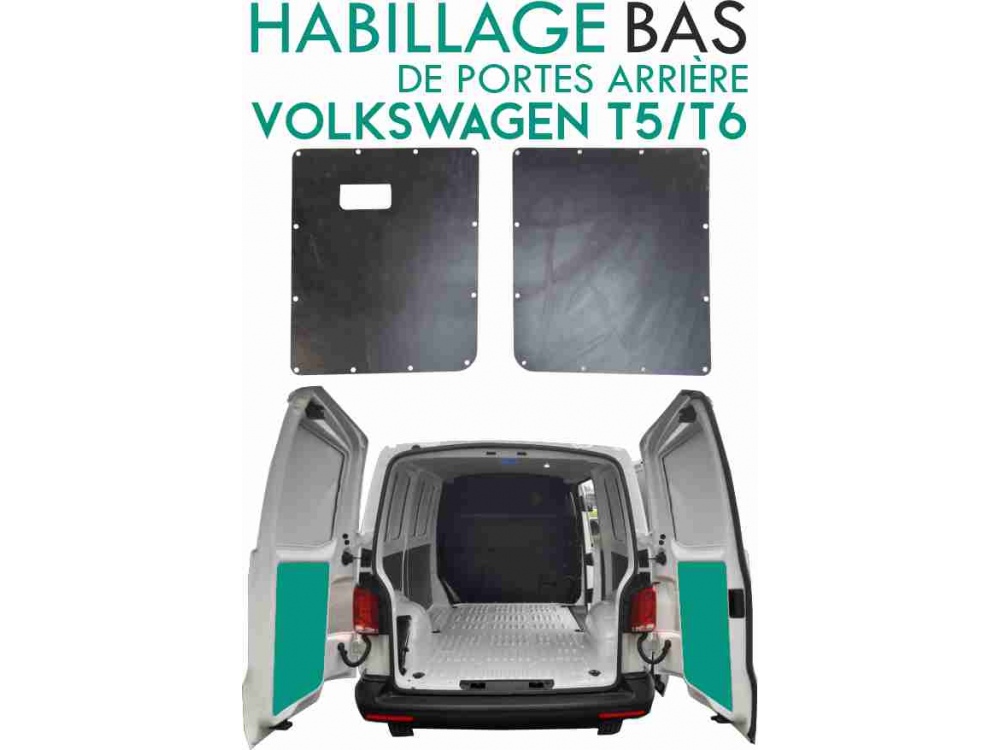 Habillage en remplacement de l'habillage plastique d'origine des portes arrière de votre Volkswagen Transporter T5/T6. Revêtement stratifié Black de haute qualité. En revêtement stratifié 1mm collé sur panneau contreplaqué 3 mm.