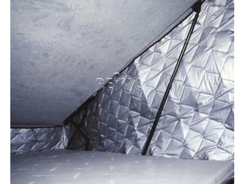 Isolant thermique aluminium pour toit relevable Reimo installé sur Volkswagen Transporter T5 ou T6 et équipé d'un compas dernière génération. (Photo)