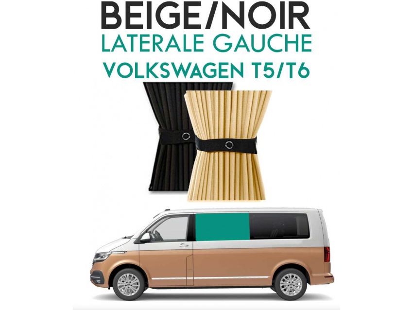 Rideaux double épaisseur blackout pour un occultant plus intense. Intérieur beige et extérieur noir opaque. Pour Volkswagen transporter T5 ou T6 L1H1 (empattement court) Pour la vitre latérale gauche. NE CONVIENT PAS AUX CLOISONS AVEC HABILLAGE.