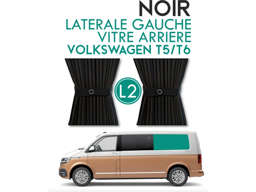 Rideaux occultant noir opaque pour Volkswagen transporter T5 ou T6 L2H1 (empattement long) Pour la vitre latérale gauche arrière. INSTALLATION FACILE. NE CONVIENT PAS AUX CLOISONS AVEC HABILLAGE.