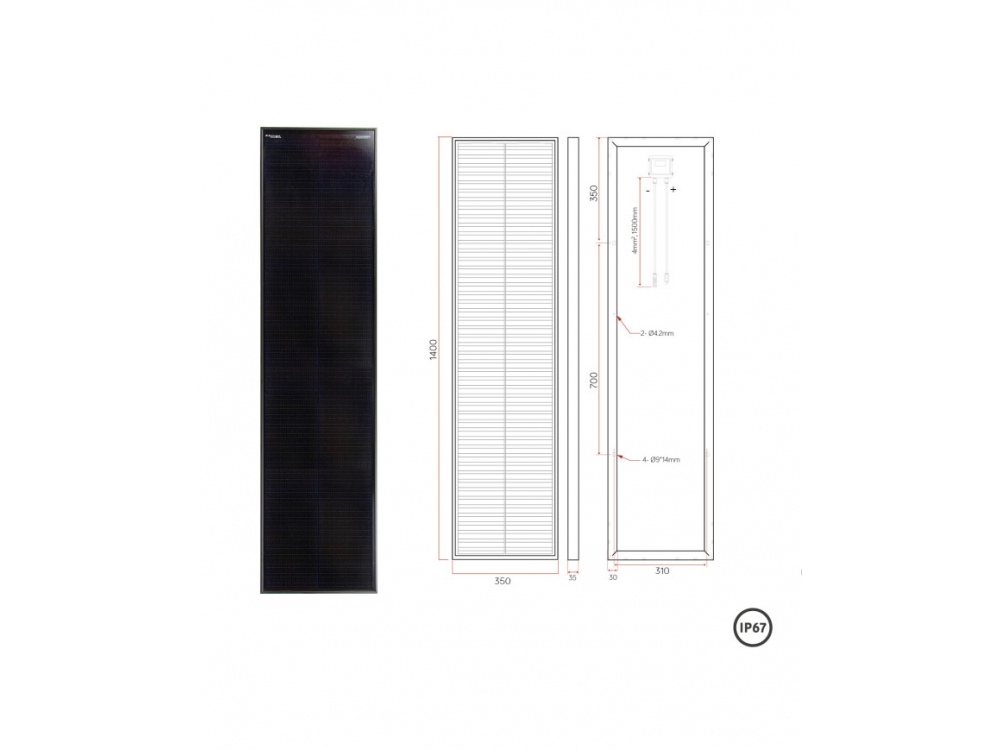 - Dimensions L x l x H : 1400 x 350 x 35 mm.