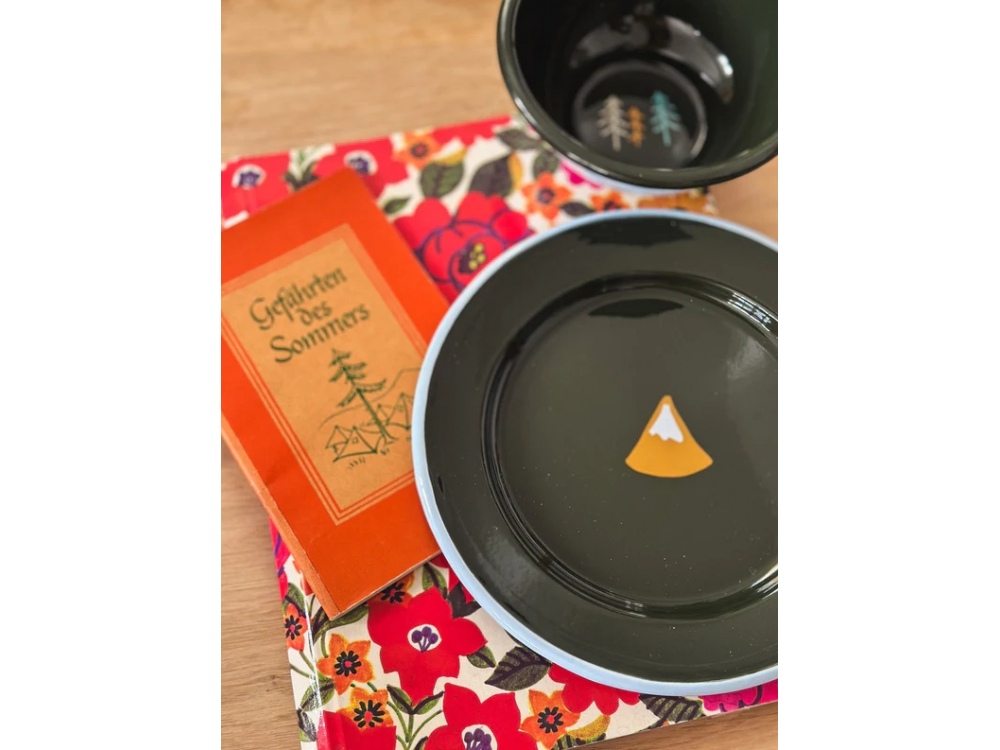 Le petit bol émaillé vert foncé et turquoise est parfait pour nos enfants qui campent ou pour grignoter le soir devant le camping-car.