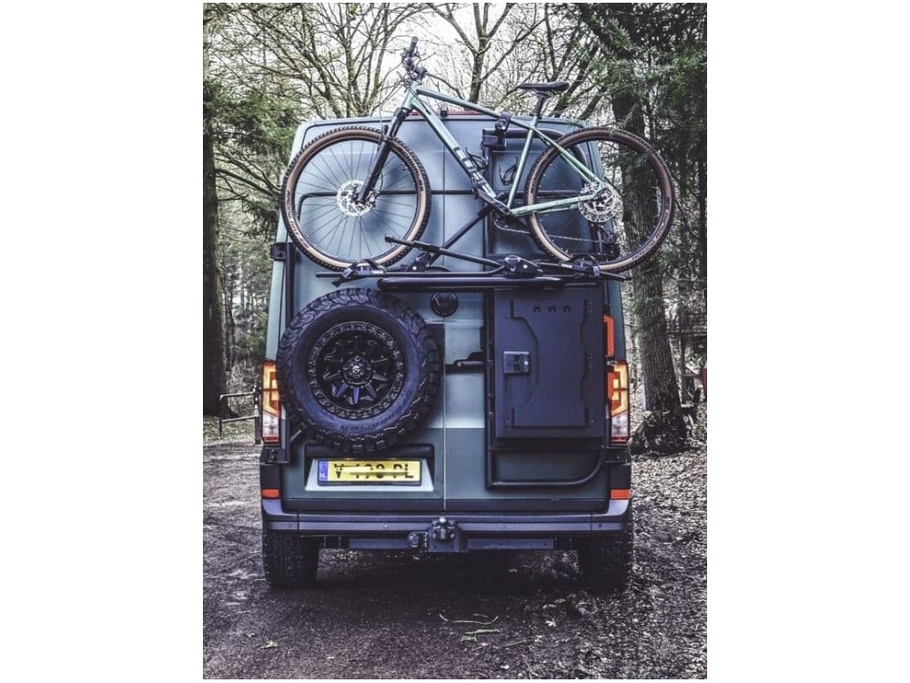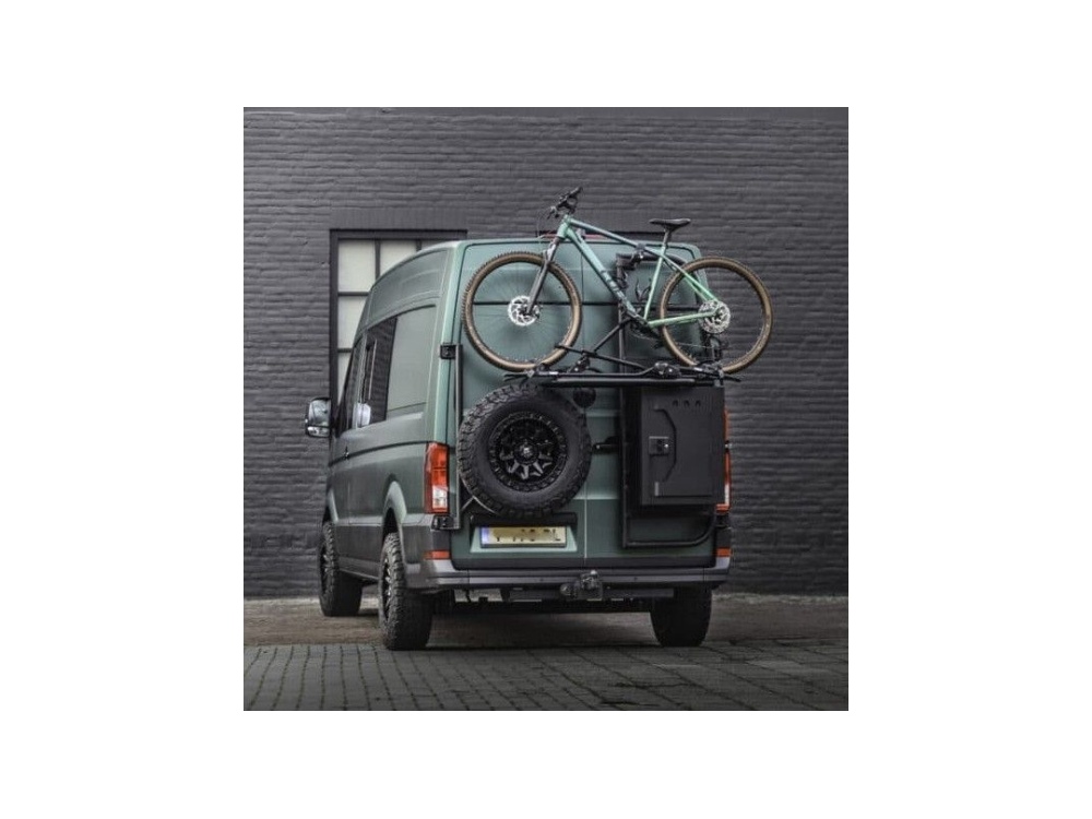 Transportez votre roue à l'arrière de votre fourgon afin qu'il soit accessible lorsque vous en avez besoin et ayez plus d'espace sous votre fourgon pour les réservoirs d'eau et de carburant auxiliaires.