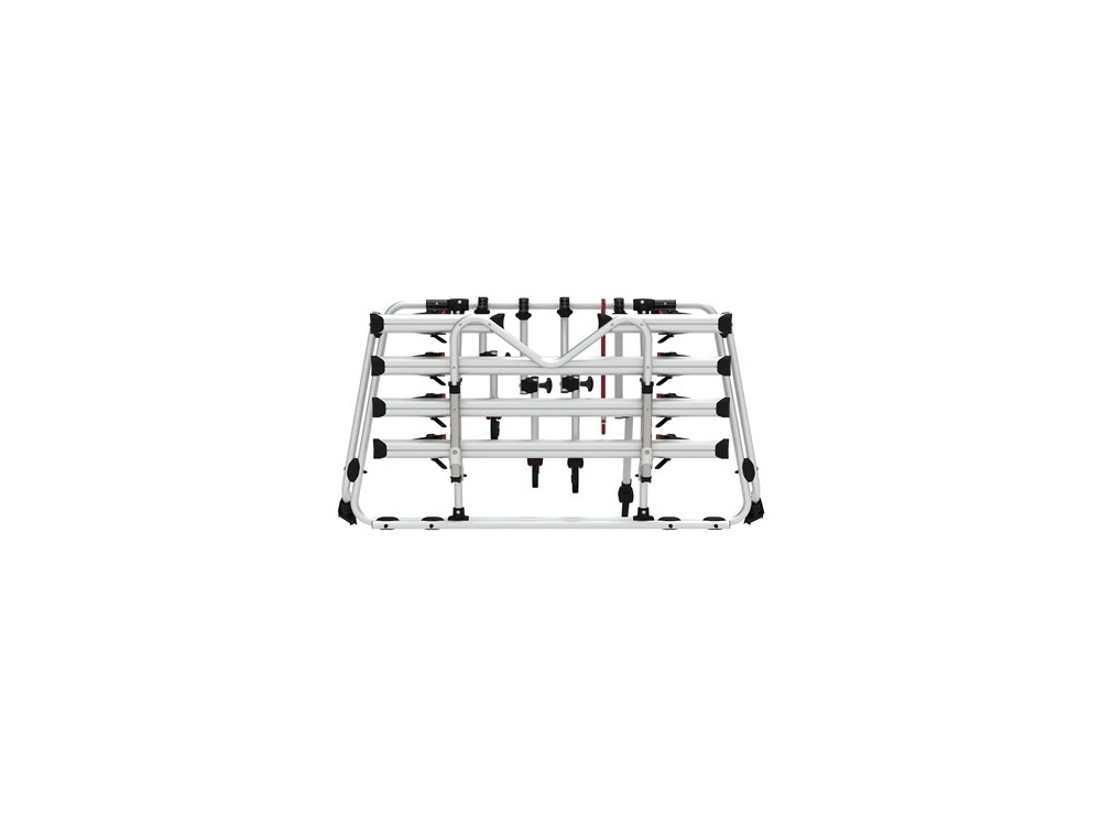 Les plaques d'appui se prenant sur le milieu du hayon, le porte vélo ne repose pas sur le pare-chocs arrières du véhicule. En standard, le FIAMMA Carry-Bike VW T6 Pro est livré avec deux rails à vélos pour 2 vélos, en option il est possible d'y rajouter deux autres rails : les FIAMMA Rails Premium Black