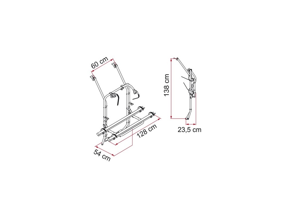 - Avec bride de support escamotable pour un maximum de 4 vélos. Rails supplémentaires vendu en option.