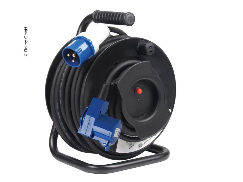 Rallonge électrique touret de 25 mètres conçu pour la connexion sur les aires de services pour les camping-car, fourgons aménagés et van.