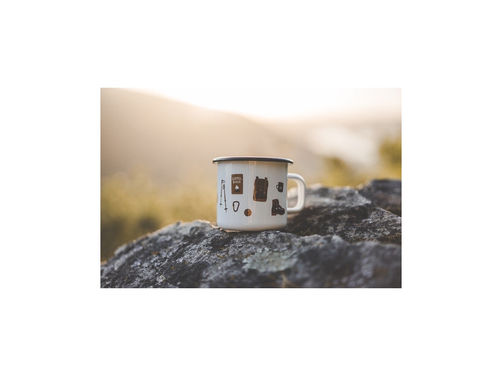 - Que vous appréciiez votre café au sommet d’une montagne ou à votre bureau, il a toujours un goût d’aventure avec cette tasse émaillée.