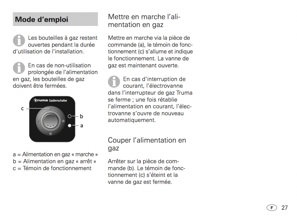 Cet interrupteur TRUMA permet d'interrompre confortablement l’alimentation en gaz d’une simple pression sur un bouton à l’intérieur du véhicule. Fonctionne avec une électrovanne se fermant automatiquement en l’absence de passage de courant.