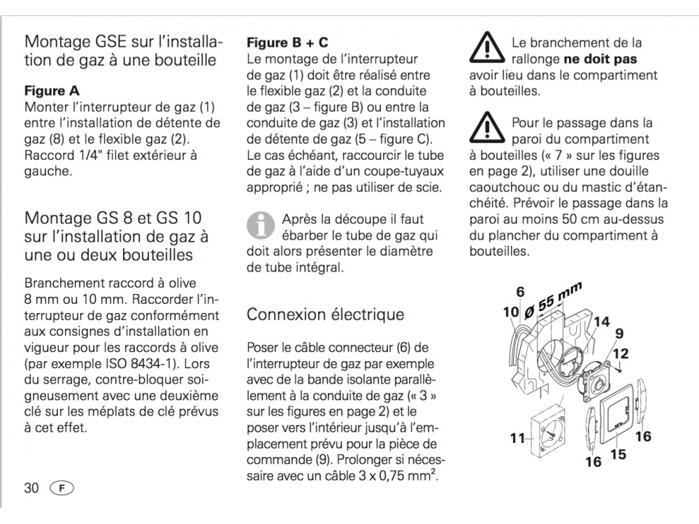 Spécifications techniques de l'interrupteur électronique / vanne de gaz 12 V TRUMA ø10mm :