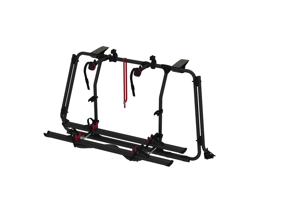 Les plaques d'appui se prenant sur le milieu du hayon, le porte vélo ne repose pas sur le pare-chocs arrières du véhicule. En standard, le FIAMMA Carry-Bike VW T6 Pro est livré avec deux rails à vélos pour 2 vélos, en option il est possible d'y rajouter deux autres rails : les FIAMMA Rails Premium Black